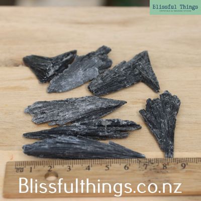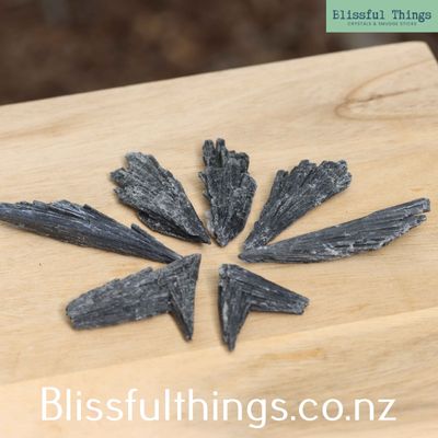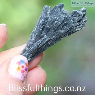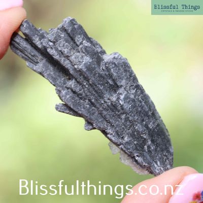 Black Kyanite is a striking, fan-shaped crystal composed of aluminum silicate, belonging to the triclinic crystal system. Naturally black to deep charcoal grey, it forms in radiating blades with a fibrous, metallic sheen. Scientifically, Black Kyanite is valued for its hardness variations—typically around 4.5 to 7 on the Mohs scale—and its unique ability to conduct energy along its striations. Metaphysically, it is known as a powerful grounding and protection stone, often used to cleanse negative energy and align the chakras, especially the root chakra. Black Kyanite requires no energetic cleansing, making it a favourite among crystal healers and energy workers. This crystal is a must-have for anyone seeking balance, psychic protection, and an easy-to-care-for addition to their crystal collection.