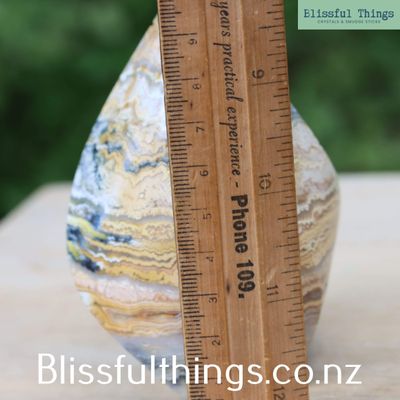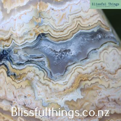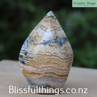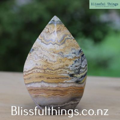 Crazy Lace Agate, also known as the "Laughter Stone" or "Happy Lace," is a captivating variety of agate, known for its intricate patterns of swirling colors such as reds, pinks, oranges, yellows, and browns. Scientifically, it is a chalcedony, a form of quartz, with a banded structure formed from mineral-rich solutions that fill cavities in volcanic rocks. The unique swirling patterns are a result of the minerals such as iron and manganese interacting with the silica in the stone.
