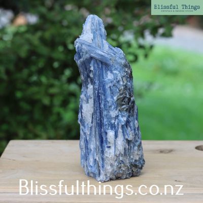 Metaphysically, Blue Kyanite is highly regarded for its healing and spiritual properties. It is believed to enhance communication, particularly by opening and balancing the Throat Chakra, promoting clear and honest expression. This stone is also known for its ability to align all of the chakras, facilitating a harmonious flow of energy throughout the body. Many people use Blue Kyanite for meditation and spiritual growth, as it is thought to connect individuals to higher states of consciousness, facilitating intuitive insight and psychic abilities. Its calming energy is said to promote peace, relieve stress, and support emotional healing, making it a powerful tool for those seeking mental clarity and emotional balance.
