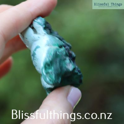 Metaphysically, malachite is considered a powerful stone for transformation and healing. It is believed to absorb negative energies, facilitate emotional cleansing, and promote deep personal growth. Often called the "stone of transformation," malachite is said to help with emotional release, enhance creativity, and encourage inner strength during periods of change. Its association with the heart chakra makes it a popular choice for emotional balance and healing.