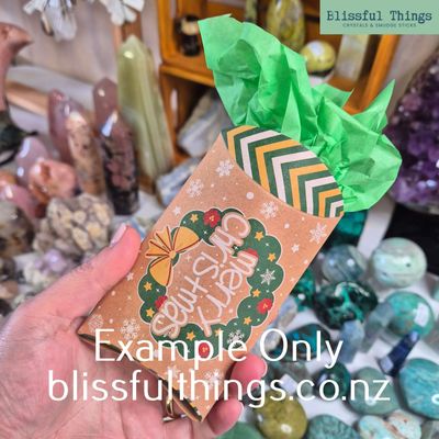 Each lucky dip is different — you might receive a polished stone, raw crystal, mini carving, or something a little magical from our Blissful Things shelves. All gifts come beautifully wrapped, so they’re ready to pop straight under the tree (or sneak into the office pile πŸŽ„).