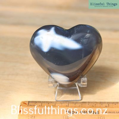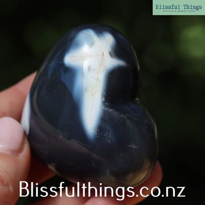 Orca Agate is a captivating and distinctive variety of agate known for its bold, white, and grey banding that resembles the markings of an orca whale. Scientifically, Orca Agate is a form of chalcedony, a microcrystalline variety of quartz formed within volcanic rocks or cavities. Its striking colour patterns are created through the gradual deposition of silica-rich minerals, and the contrasting bands of black and white are often the result of the presence of minerals like iron and manganese. These colour variations not only make Orca Agate visually stunning but also contribute to its metaphysical properties. Metaphysically, Orca Agate is thought to be a powerful stone of emotional healing, offering balance and stability in times of stress or emotional turbulence. It is said to be particularly helpful in harmonising the mind and heart, promoting inner peace and the release of negative emotions. This agate is often associated with the root and crown chakras, helping to ground spiritual energy while simultaneously enhancing mental clarity and insight. Orca Agate is also believed to encourage communication, both with oneself and others, fostering honesty and a deeper understanding of one’s true nature. As a stone of protection and strength, it is considered beneficial for those seeking to overcome obstacles and navigate challenging situations. Additionally, Orca Agate is linked to the qualities of endurance and resilience, as the orca whale is a symbol of power, intelligence, and adaptability in the animal kingdom. Many use Orca Agate in meditation to promote emotional balance, spiritual growth, and a strong connection to both the Earth and the cosmos.