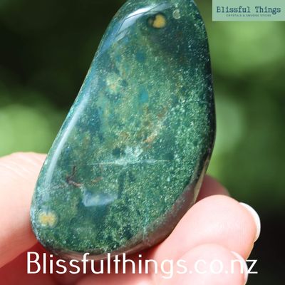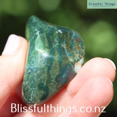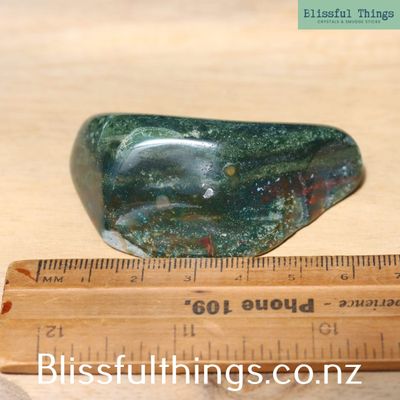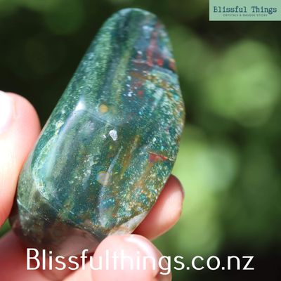 Tumbled in NZ, Stone from India. This Bloodstone is displaying more signs of Green Jasper (no red dots), but from the same deposits as the other Indian Bloodstone stocked.