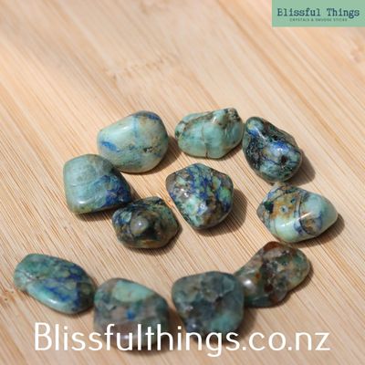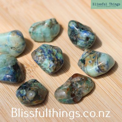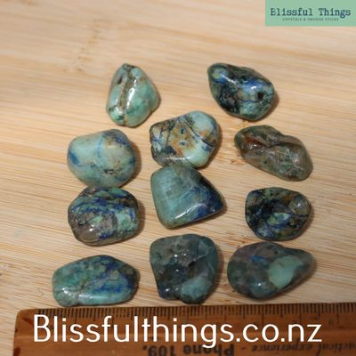 Azurite in Green Moonstone Tumbled is priced per peace and selected at random when purchased.