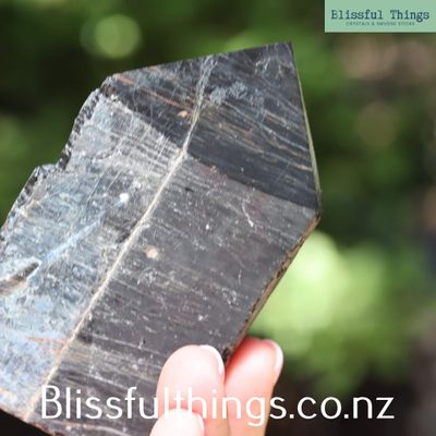Brown lines/ markings can be confused with Mahogany Obsidian. In this case, there are actually Iron Inclusions.