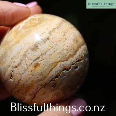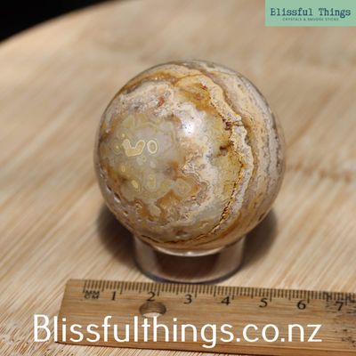 Yellow Crazy Lace Agate Sphere with Pockets of Druse