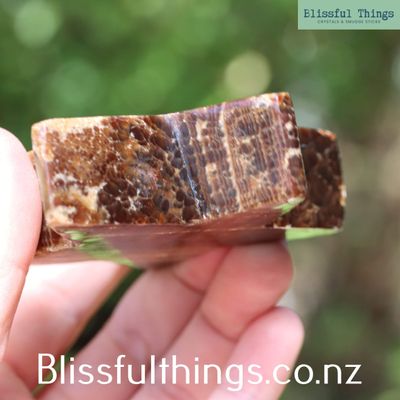 Chocolate Calcite is a beautifully banded form of calcite featuring rich, earthy tones of brown, caramel, and cream. Its colouring comes from natural inclusions and mineral layering, often creating striking, layered patterns that resemble swirls of chocolate. Scientifically, calcite is a calcium carbonate mineral that forms in sedimentary environments and is known for its softness and distinctive rhombohedral cleavage. Metaphysically, Chocolate Calcite is deeply grounding and comforting, promoting emotional stability and a sense of calm. It encourages self-worth, creativity, and positive transformation, making it a supportive ally during times of change. This nurturing stone is also thought to help clear energy blockages and attract abundance, especially when used with intention in a healing or sacred space.