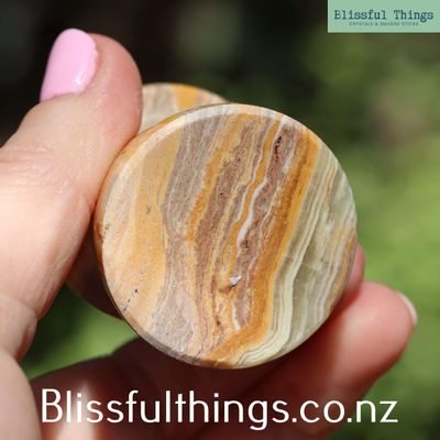 Banded calcite, also marketed as onyx, is a striking variety of the mineral calcite, characterised by its distinct, layered bands of varying colours, typically white, orange, yellow, brown, and sometimes even green. The bands in banded calcite are a result of different mineral impurities or variations in crystal growth conditions over time. Metaphysically, banded calcite is considered a powerful stone for emotional healing and balance. Each color band is believed to correspond with specific energies—orange and yellow bands are said to support creativity, vitality, and self-confidence. In contrast, white or clear bands are thought to bring clarity and purification. This stone is also known for its ability to calm stress and promote a sense of inner peace, making it a popular tool in meditation and energy healing practices. Banded calcite is often used to clear stagnant energy and foster a sense of renewal, providing a gentle yet effective way to restore harmony to both the mind and the environment.