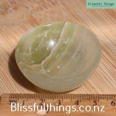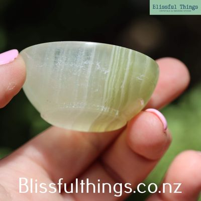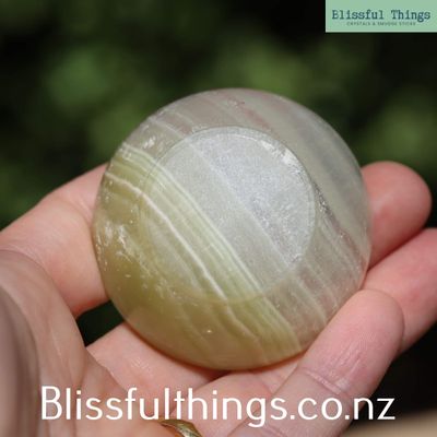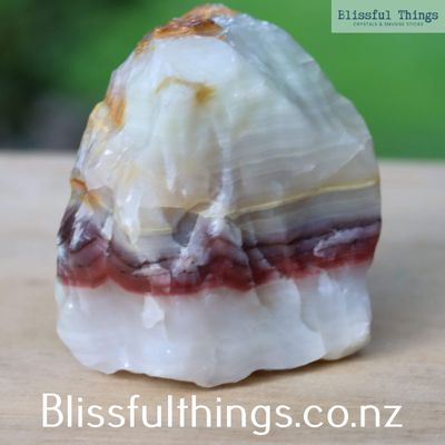 Banded calcite, also marketed as onyx, is a striking variety of the mineral calcite, characterised by its distinct, layered bands of varying colours, typically white, orange, yellow, brown, and sometimes even green.  The bands in banded calcite are a result of different mineral impurities or variations in crystal growth conditions over time. Metaphysically, banded calcite is considered a powerful stone for emotional healing and balance. Each color band is believed to correspond with specific energies—orange and yellow bands are said to support creativity, vitality, and self-confidence. In contrast, white or clear bands are thought to bring clarity and purification. This stone is also known for its ability to calm stress and promote a sense of inner peace, making it a popular tool in meditation and energy healing practices. Banded calcite is often used to clear stagnant energy and foster a sense of renewal, providing a gentle yet effective way to restore harmony to both the mind and the environment.