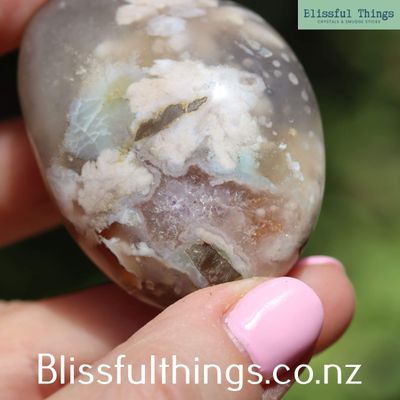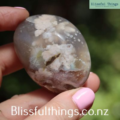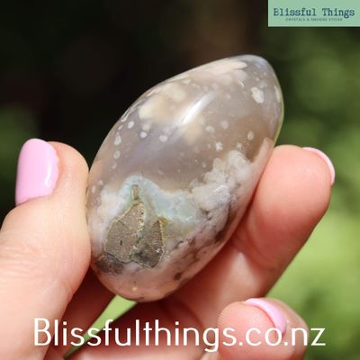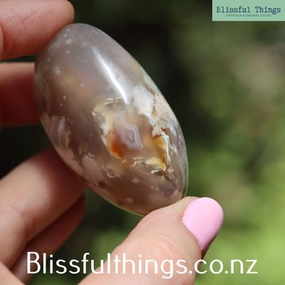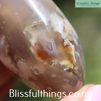 Flower Agate, a beautiful form of Chalcedony from Madagascar, is known for its delicate, flower-like inclusions that resemble tiny blossoms frozen in stone. Scientifically, it’s a microcrystalline variety of Quartz, formed over millions of years as silica-filled ancient coral and volcanic structures, creating its soft pink, white, and peach hues. Metaphysically, Flower Agate is a crystal of growth, renewal, and emotional healing, believed to nurture self-love, confidence, and the courage to bloom into your full potential. A favourite among crystal lovers in New Zealand, this gentle yet powerful stone connects with the Heart Chakra, bringing balance, peace, and joy to all who work with it.
