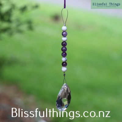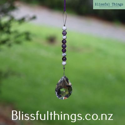Rainbow Catcher - 38mm Teardrop with Amethyst and Howlite Beads