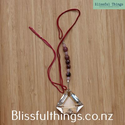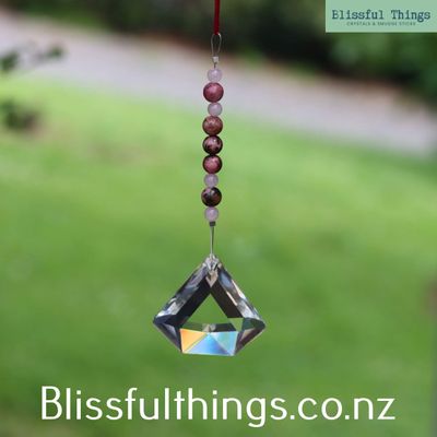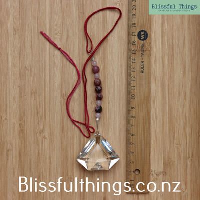 Rainbow Catcher - Five-sided Prism with Rhodonite and Rose Quartz Beads