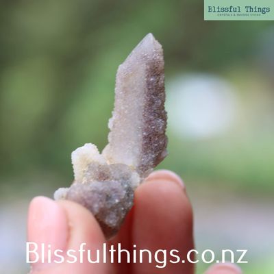 Spirit Quartz is a remarkable crystal formation found primarily in South Africa, known for its sparkling appearance and powerful energy. It forms when a larger central Quartz point becomes coated in hundreds of tiny secondary crystals growing over its surface—a process known as second-generation growth. This creates a shimmering, drusy texture and gives the crystal its distinctive look. Spirit Quartz can appear in various colors, including clear (Quartz), purple (Amethyst), citrine-like golden tones, and even smoky hues, depending on trace mineral content. As a member of the Quartz family, it shares the same hardness and hexagonal structure, making it both durable and energetically dynamic. Metaphysically, Spirit Quartz is valued for its ability to harmonize the aura, uplift the spirit, and foster unity and cooperation. It’s often used in meditation and group work to promote collective healing, spiritual growth, and a strong sense of community. The many points are believed to radiate energy in all directions, enhancing its power to cleanse and charge other crystals and the surrounding environment.