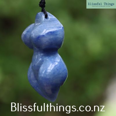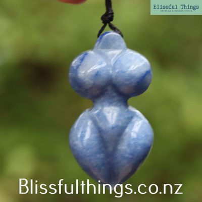 Blue Quartz Goddess Pendant with Complementary Cord.