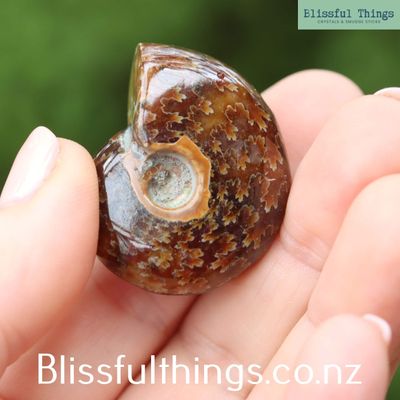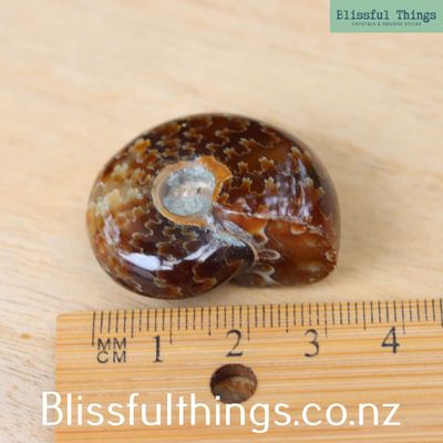Ammonites are part of the Nautiloid family and similar to the Nautilus species we see in our oceans today. These ancient marine creatures are now extinct relatives of modern cephalopods, such as squid and octopus. Their distinctive spiral shells, often beautifully fossilised, display intricate chamber patterns that once helped them regulate buoyancy in the water. Scientifically fascinating due to their evolutionary history and use in dating rock layers, ammonites also hold strong metaphysical significance. They are believed to carry the energy of continual change and evolution, offering grounding and protection while encouraging stability during transformation. Their spiral shape is often seen as a symbol of the cosmic cycle and the flow of life itself. This Ammonite has skillfully been cut and then polished to show the classic Nautiloid chambers.