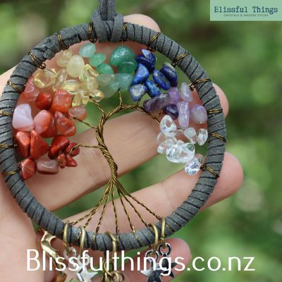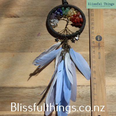 Tree of Life Dream Catcher - Blue and Chakra Stones