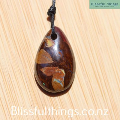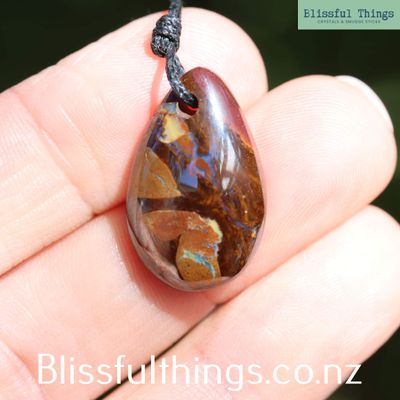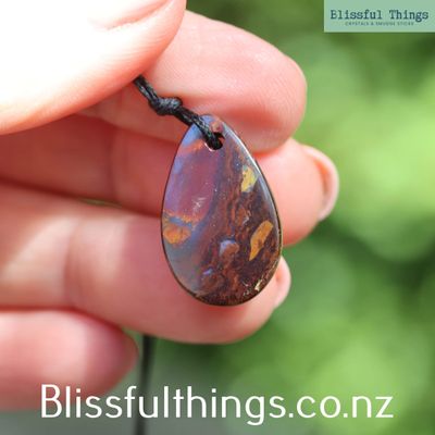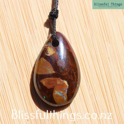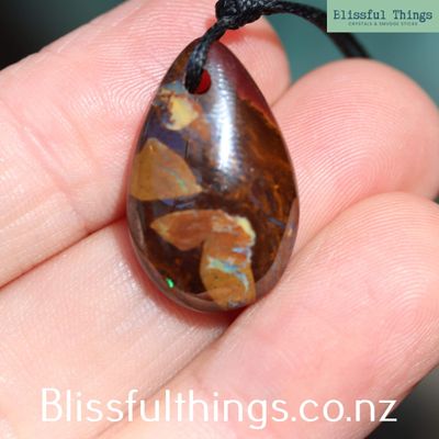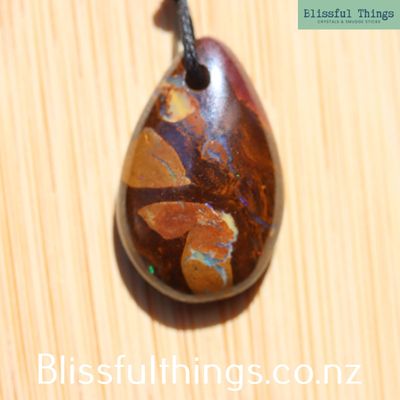 Australian Boulder Opal pendant shaped into a teardrop cabochon.