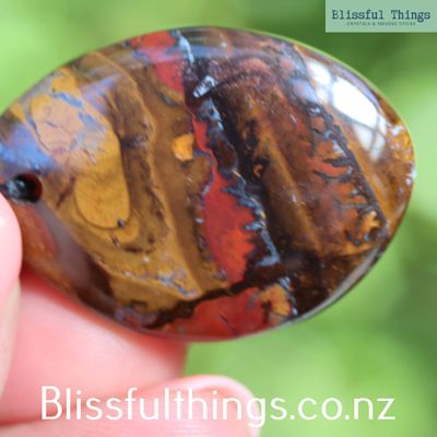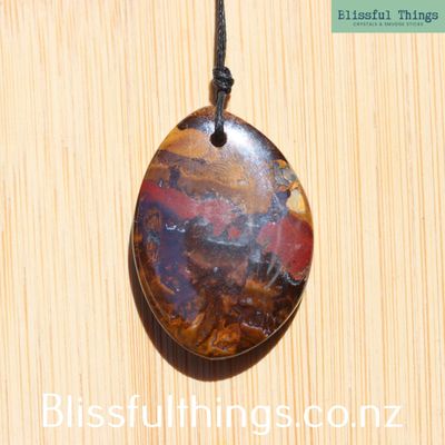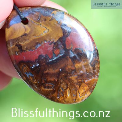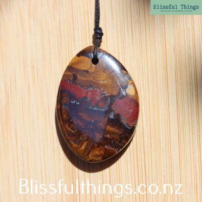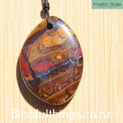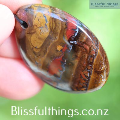 Australian Boulder Opal pendant shaped into a Irregular Oval cabochon.