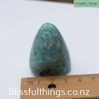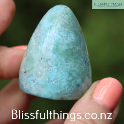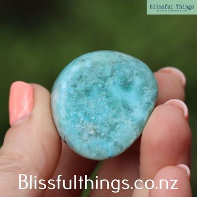 Larimar is a rare and stunning blue variety of pectolite, a mineral that forms in volcanic rocks. Scientifically, Larimar is found primarily in the Dominican Republic and is known for its beautiful turquoise to blue colors, which are created by the presence of copper and other trace elements. This unique gemstone is highly valued for its distinct patterning and smooth texture. Metaphysically, Larimar is often referred to as the "stone of the sea and sky" due to its calming, tranquil energy. It is believed to be deeply connected to the throat chakra, facilitating clear communication and self-expression. Larimar is also associated with emotional healing, promoting peace, relaxation, and harmony. It is said to help alleviate stress, release negative emotions, and enhance one’s connection to higher consciousness, making it a powerful tool for meditation and spiritual growth.