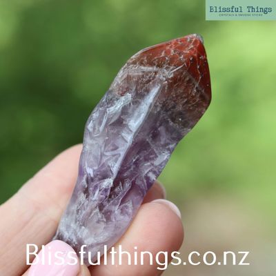 Red Capped Amethyst is a striking variety of amethyst where a natural layer of hematite or iron oxide forms over the crystal tips, creating rich red to rusty orange caps above the familiar violet quartz. Scientifically, this occurs when iron-rich solutions coat the amethyst during its final stages of growth, giving it its distinctive two-tone appearance. Metaphysically, Red Capped Amethyst blends the grounding strength of hematite with the spiritual clarity of amethyst. It’s said to enhance courage, vitality, and spiritual awareness—helping you stay centred while deepening your intuitive connection.