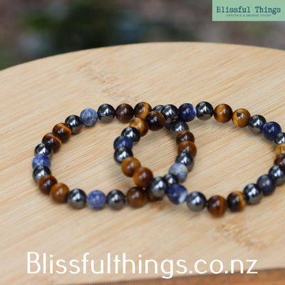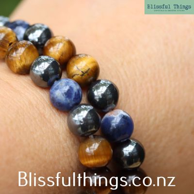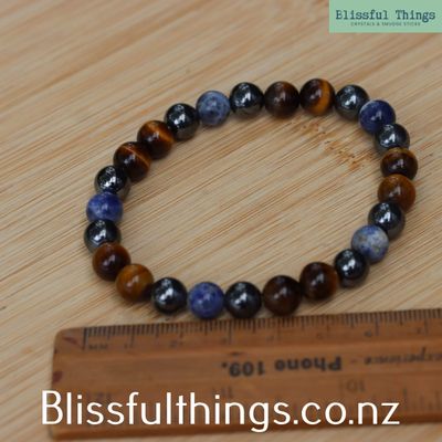 Hematite, Tigers eye & Sodalite 8mm Round Bracelet