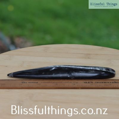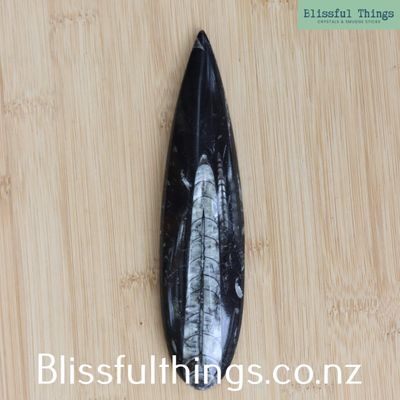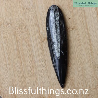 Orthoceras is an extinct genus of marine cephalopods that lived around 400 million years ago during the Ordovician period. Their fossilized shells, typically long and conical with internal chambers, are commonly found in black limestone and are composed primarily of calcite. These ancient creatures are related to modern squids and nautiluses, and their fossils are often found in Morocco and other parts of the world. Metaphysically, Orthoceras is known for grounding energy and connecting one to Earth’s ancient wisdom. It has been seen to assist with past-life recall, promote personal growth, and encourage a sense of stability during times of change. Many believe it helps balance emotions and supports transformation, making it a powerful tool for meditation and healing work.