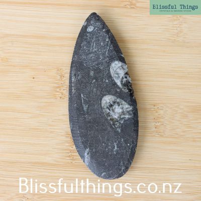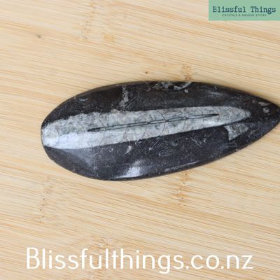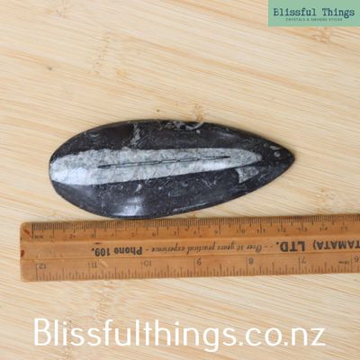 Orthoceras is an extinct genus of marine cephalopods that lived around 400 million years ago during the Ordovician period. Their fossilized shells, typically long and conical with internal chambers, are commonly found in black limestone and are composed primarily of calcite. These ancient creatures are related to modern squids and nautiluses, and their fossils are often found in Morocco and other parts of the world. Metaphysically, Orthoceras is known for grounding energy and connecting one to Earth’s ancient wisdom. It has been seen to assist with past-life recall, promote personal growth, and encourage a sense of stability during times of change. Many believe it helps balance emotions and supports transformation, making it a powerful tool for meditation and healing work.