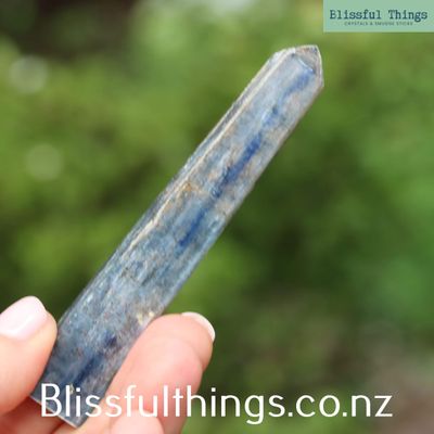 Metaphysically, Blue Kyanite is highly regarded for its healing and spiritual properties. It is believed to enhance communication, particularly by opening and balancing the Throat Chakra, promoting clear and honest expression. This stone is also known for its ability to align all of the chakras, facilitating a harmonious flow of energy throughout the body. Many people use Blue Kyanite for meditation and spiritual growth, as it is thought to connect individuals to higher states of consciousness, facilitating intuitive insight and psychic abilities. Its calming energy is said to promote peace, relieve stress, and support emotional healing, making it a powerful tool for those seeking mental clarity and emotional balance.