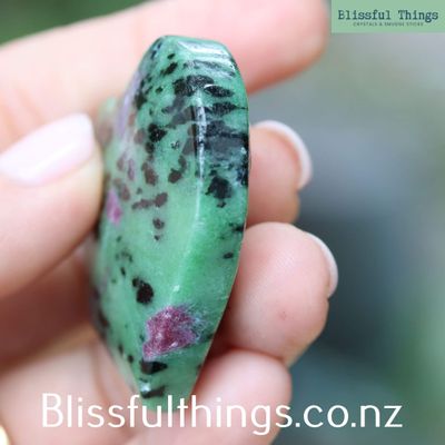 Ruby Zoisite, a striking combination of vibrant red ruby and lush green zoisite, is a unique metamorphic gemstone that captures attention with its stunning colour contrast. Scientifically, this stone is formed through the alteration of marble, where ruby, a variety of corundum, infuses the green zoisite, a member of the epidote group. Known for its hardness, Ruby Zoisite is not only a beautiful addition to any collection but also possesses powerful metaphysical properties. It is believed to enhance emotional balance and promote a sense of joy, while also encouraging self-discovery and spiritual growth. In addition, this stone has been said to be often used in meditation practices to stimulate the heart chakra, fostering compassion and deeper connections.