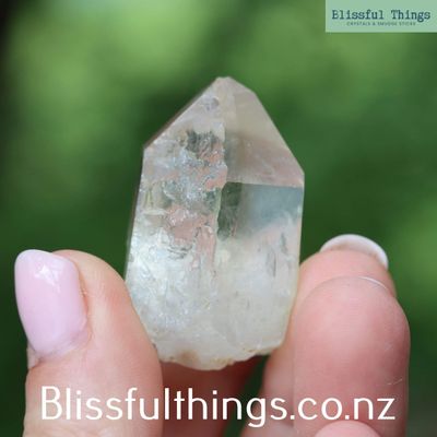 Citrinated is a descriptive mineral term referring to a tiny bit of citrine within the Quartz, and it has the same metaphysical properties as Citrine.