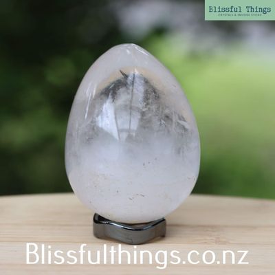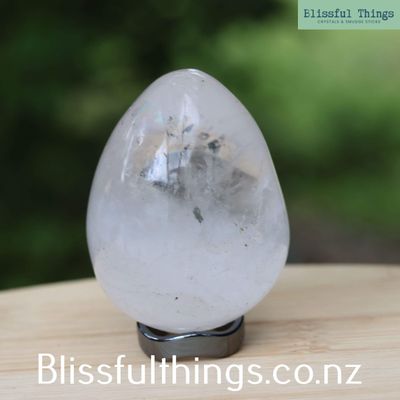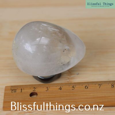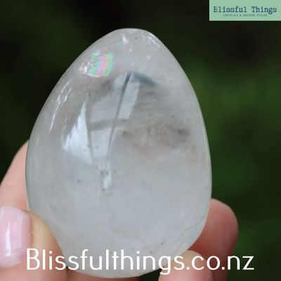 Clear Quartz Crystal Egg with a little Rainbow inclusion at the top.