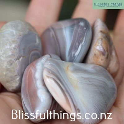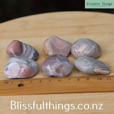 Botswana Agate is a striking variety of banded Chalcedony, a member of the Quartz family formed through volcanic activity millions of years ago. Found mainly in Botswana, Africa, this unique agate displays soft layers of grey, pink, and earthy tones. Spiritually, Botswana Agate is valued for its grounding and protective energy, bringing comfort during times of change and helping ease stress or anxiety. Many believe it supports emotional healing, stability, and balance, making it a popular crystal for meditation, energy work, and crystal collections.