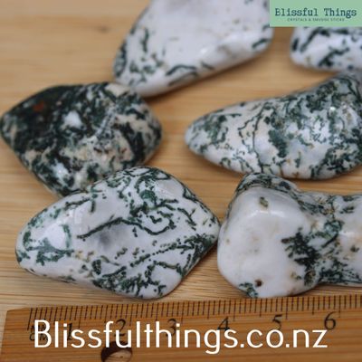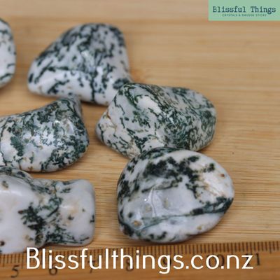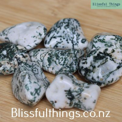Tree Agate is a variety of chalcedony, a microcrystalline form of quartz (silicon dioxide), typically milky white to pale green with distinctive dendritic inclusions that resemble branches, moss, or foliage formed by mineral growth within the stone. These natural patterns develop as trace minerals crystallise through the silica over time. Metaphysically, Tree Agate is known as a stone of inner peace and connection to nature, often associated with grounding, patience, and steady personal growth. It is believed to support emotional calm, resilience, and a deep sense of harmony with the natural world.