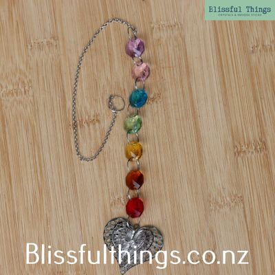 Hanging Heart with Sun Catcher Multi Coloured beads
