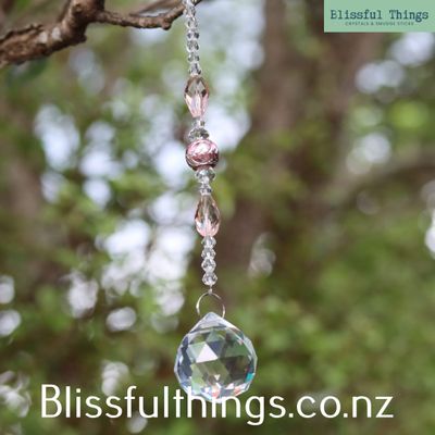 Sun Catcher Sphere 30mm with Pink and Clear Beads