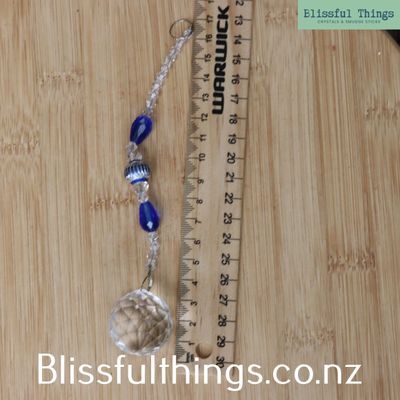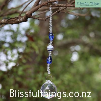 Sun Catcher Sphere 30mm with Dark Blue and Clear Beads