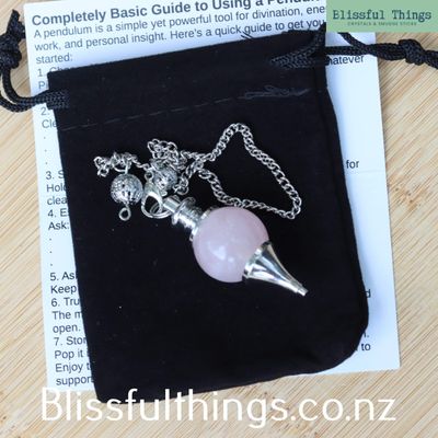 A pendulum is a simple yet powerful tool often used for divination, energy work, and connecting with intuition. It typically consists of a weighted object, often a crystal, suspended on a chain or string, which allows it to swing freely. While the crystal adds beauty and energy, it complements the pendulum's purpose rather than being essential to its function. If you're curious to learn more, check out our page on Pendulum Basics for a deeper introduction.