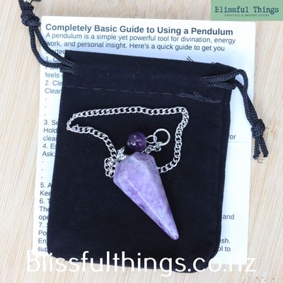 A pendulum is a simple yet powerful tool often used for divination, energy work, and connecting with intuition. It typically consists of a weighted object, often a crystal, suspended on a chain or string, which allows it to swing freely. While the crystal adds beauty and energy, it complements the pendulum's purpose rather than being essential to its function. If you're curious to learn more, check out our page on Pendulum Basics for a deeper introduction.
