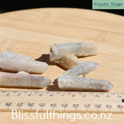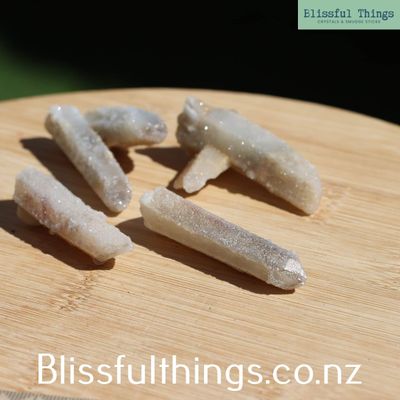 Spirit Quartz is a remarkable crystal formation found primarily in South Africa, known for its sparkling appearance and powerful energy. It forms when a larger central Quartz point becomes coated in hundreds of tiny secondary crystals growing over its surface—a process known as second-generation growth. This creates a shimmering, drusy texture and gives the crystal its distinctive look. Spirit Quartz can appear in various colors, including clear (Quartz), purple (Amethyst), citrine-like golden tones, and even smoky hues, depending on trace mineral content. As a member of the Quartz family, it shares the same hardness and hexagonal structure, making it both durable and energetically dynamic. Metaphysically, Spirit Quartz is valued for its ability to harmonize the aura, uplift the spirit, and foster unity and cooperation. It’s often used in meditation and group work to promote collective healing, spiritual growth, and a strong sense of community. The many points are believed to radiate energy in all directions, enhancing its power to cleanse and charge other crystals and the surrounding environment.