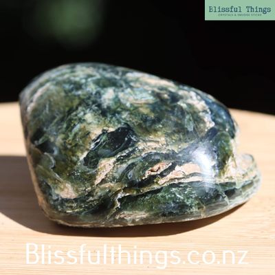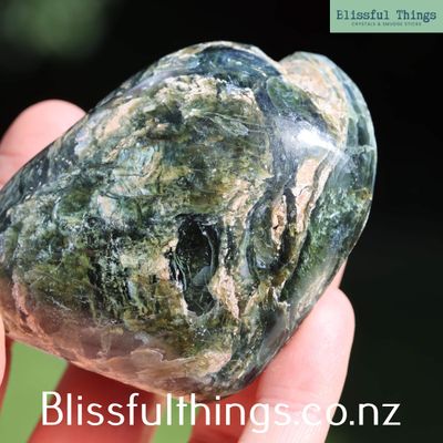 Tangiwai, also known as Bowenite, is a beautiful New Zealand stone valued both scientifically and spiritually. Scientifically, Tangiwai is a variety of the mineral Bowenite, which belongs to the Serpentine Group of minerals. It is typically found in rich green shades ranging from pale apple green to deep olive and is prized for its smooth, tough structure that allows it to be polished to a glossy finish. In New Zealand, Tangiwai is historically associated with Māori culture and is sometimes described as a form of Pounamu, though it is technically a serpentine rather than nephrite jade. Metaphysically, Tangiwai is often connected with emotional healing and the flow of the heart. Its name translates roughly to “tears” in Māori, and many believe it helps release old emotional pain, bringing calm, compassion, and gentle renewal. This soothing green stone is thought to encourage balance, support the heart chakra, and help restore inner peace while strengthening a person’s connection to the natural energies of Aotearoa.