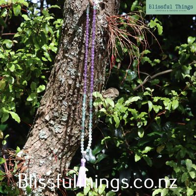 A Mala bead necklace is a traditional strand of 108 beads used for meditation, prayer, and mindful intention. Originating from spiritual practices in regions such as India and Nepal, malas are commonly used to count mantras, breaths, or affirmations during meditation. Each bead is moved through the fingers as a mantra or intention is repeated, helping the mind stay focused and calm. Today, mala beads are often made from natural materials such as wood, seeds, or crystals and are used both as meditation tools and meaningful spiritual jewellery.