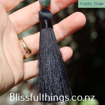 The necklace has an approximate perimeter of 86 cm, with a tassel length of 9.5 cm.