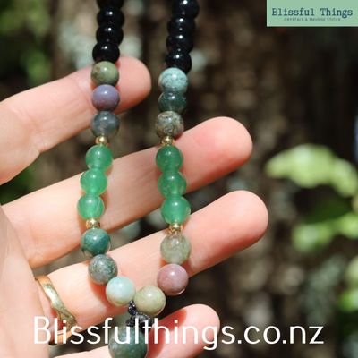 Mala Style Beads, Black Obsidian, Indian Agate and Green Agate