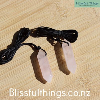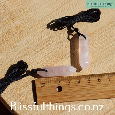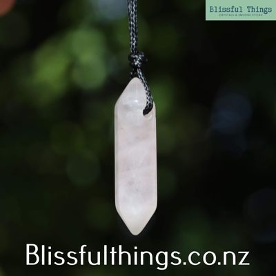 Rose Quartz double-terminated pendant on a complementary black cord.