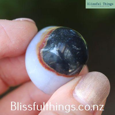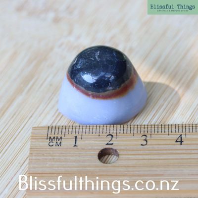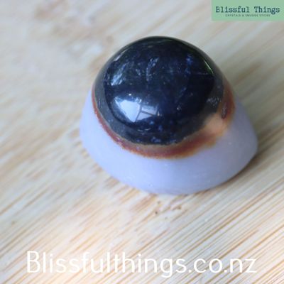 Shiva's Eye Agate, crafted from Indian Agate and intricately shaped into a distinctive ‘eye’ form, is both a marvel of nature and a profound spiritual tool. Scientifically, Shiva's Eye Agate is a type of chalcedony characterized by its concentric bands and eye-like patterns, which result from the unique mineral formation process. The agate is prized for its durability and vibrant hues, which can range from earthy blacks, greys and browns to striking reds and greens. Metaphysically, Shiva's Eye Agate is revered for its powerful protective qualities, believed to shield against negative energies and enhance spiritual insight. It is said to promote inner vision, balance emotional energies,