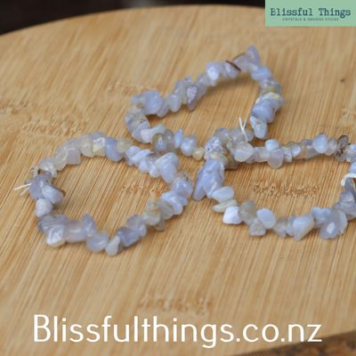 Price is for one Blue Lace Agate Chip Bracelet as shown in the photo and will be similar to what is in the photo. Standard size