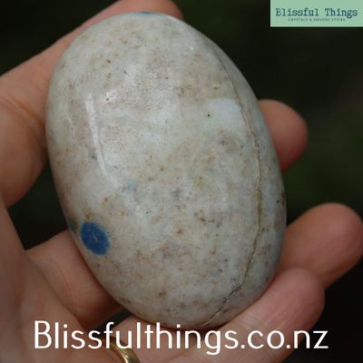 Metaphysically, K2 is often seen as a stone that balances earth and spirit. The grounding energy of the granite combines with the higher-vibration energy of azurite, making it a popular stone for meditation, intuition, and spiritual insight. It is commonly associated with the Third Eye and Crown chakras, helping to strengthen inner awareness while keeping one grounded and centred in everyday life.