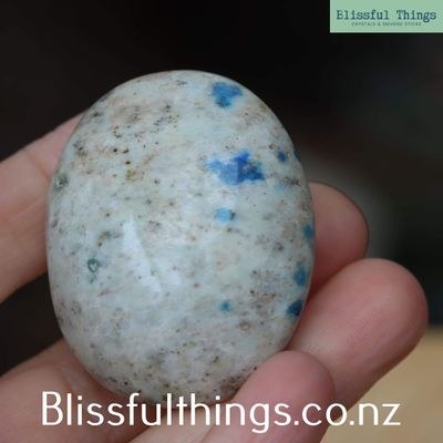 Metaphysically, K2 is often seen as a stone that balances earth and spirit. The grounding energy of the granite combines with the higher-vibration energy of azurite, making it a popular stone for meditation, intuition, and spiritual insight. It is commonly associated with the Third Eye and Crown chakras, helping to strengthen inner awareness while keeping one grounded and centred in everyday life.