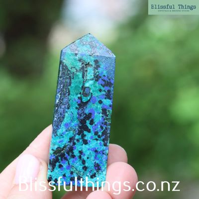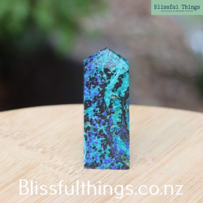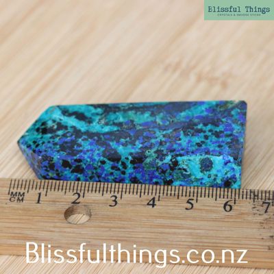 Azurite is a soft mineral, so including another mineral, such as Malachite, within the matrix can assist in working with the material, as it's a bit stronger. Because the structure is soft, it is very normal to have the odd chip here and there. Having this naturally occurring mineral mix also creates a striking mineral composition. Chrysocolla can also be present.