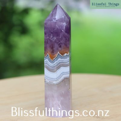 Mexican Agate with Amethyst Tower